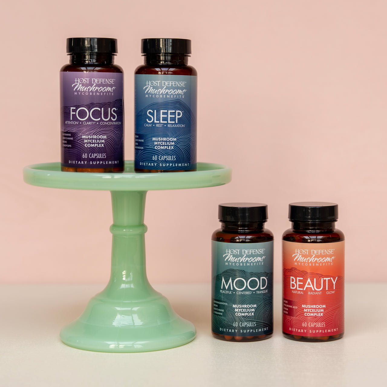 Looking for an all-natural addition to your supplement routine? With mushroom mycelium as the foundation for every formula, the MycoBenefits™ line from Host Defense® embraces the combined synergy of mushrooms with well-known ingredients like herbs, vitamins, and minerals to offer benefits designed to target your specific needs.*