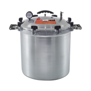The All-American Pressure Sterilizers differ from the Pressure Cookers in several ways that make them better tools for the mushroom cultivator. A stopcock prevents steam from escaping once sterilization temperatures have been achieved (the Pressure Cooker utilizes a weighted vent pipe instead); this means that they require less monitoring than the Pressure Cooker. These units also feature a capillary tube and a removable solid insert basket. 41 quart capacity, enough to hold nineteen 1-quart jars.