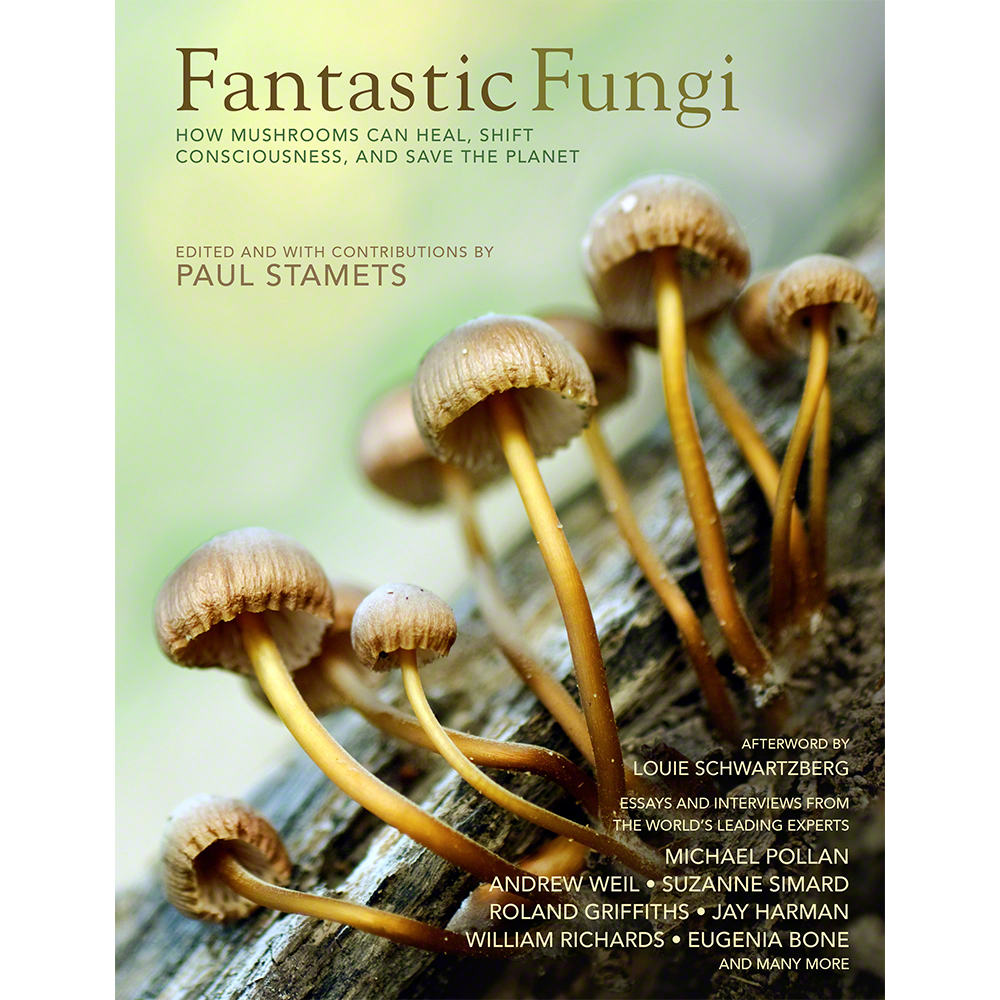 Companion to the film Fantastic Fungi. Edited by Paul Stamets. With contributions from Paul Stamets, Michael Pollan, Andrew Weil, Eugenia Bone, and many more professional and amateur mycologists, artists, foodies, ecologists, doctors, and explorers. This all-star team joined with time-lapse master Louie Schwartzberg to create Fantastic Fungi, the life-affirming, mind-bending film about mushrooms and their mysterious interwoven rootlike filaments called mycelium. What they reveal will blow your mind and possibly save the planet. This visually compelling companion book will expand upon the film in every way through extended transcripts, new essays and interviews, and additional facts about the fantastic realm of fungi. In this book, learn about the incredible communication network of mycelium under our feet, which has the proven ability to restore the planet’s ecosystems, repair our health, and resurrect our symbiotic relationship with nature. Motivating both the visually stunning film and this follow-up book is an urgent mission to change human consciousness and restore our planet. 184 pages, hardcover.