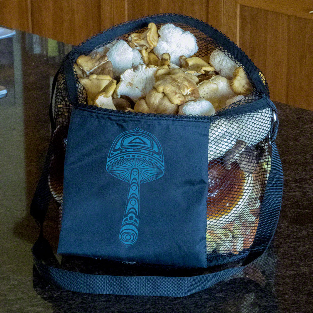These innovative, lightweight mushroom-gathering bags are made of durable nylon mesh, with reinforced seams and an adjustable carrying strap. The open-air design allows spores to drop freely through the bag, helping to replenish your wild stock as you go. Deluxe Bag measures 12½" high and 11" in diameter, and features a flexible, wire-reinforced ring built into the base to allow for a bucket-style carry that helps to keep your bounty from becoming too tightly compressed as you forage. The entire bag folds up into its integral carrying pouch for storage. We highly recommend these bags for mushroom hunters everywhere.