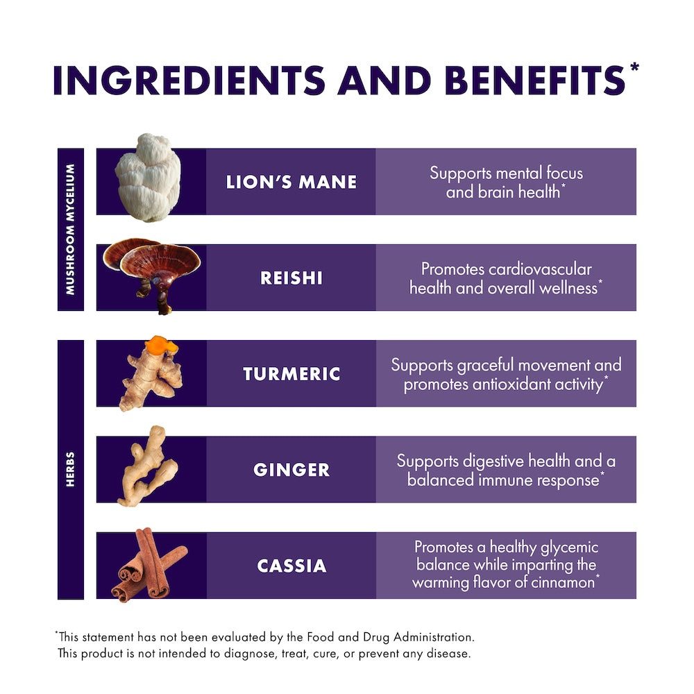 - Reishi - Promotes cardiovascular health and overall wellness.*