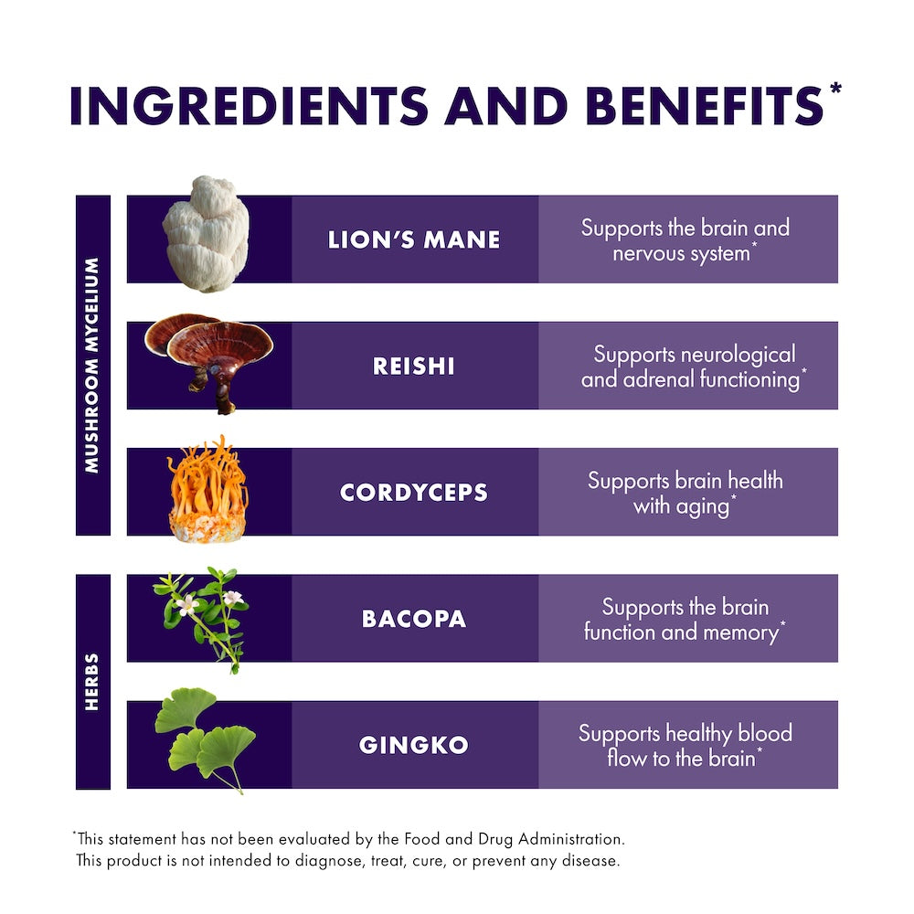 The brain is the control center for all functions of the body. Protecting and nourishing our brain and nervous system is key to ensuring optimal cognitive functioning throughout our lives. MycoBotanicals® Brain* is a blend of mushroom mycelium and herbs specifically designed to support concentration, memory, cognitive functioning, and the nervous system.*