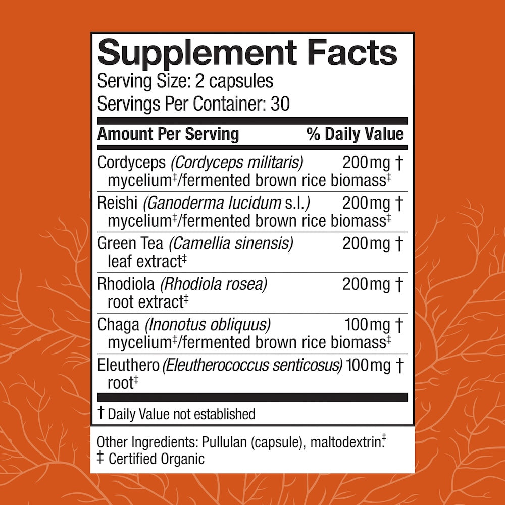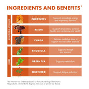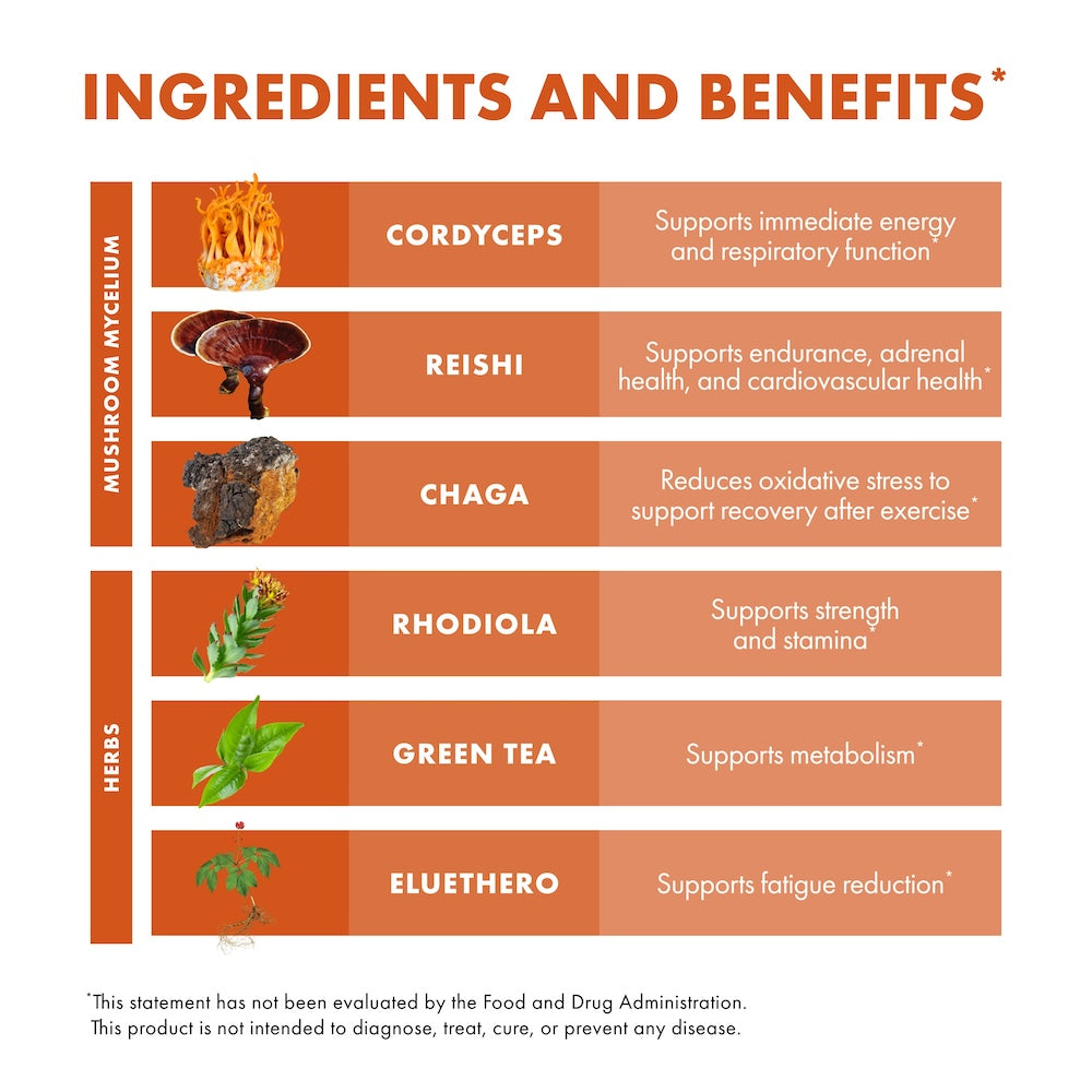 - Cordyceps - Supports immediate energy and respiratory function.*
