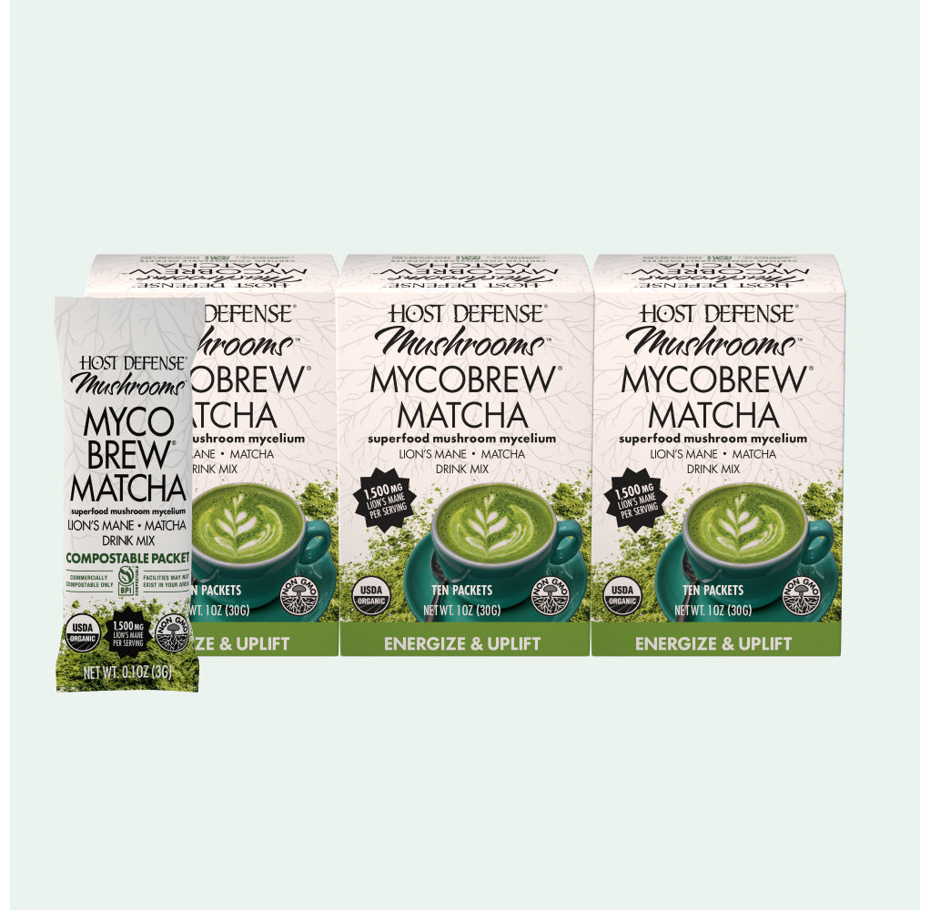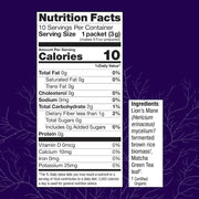 Ingredients: Lion’s Mane (Hericium erinaceus) mycelium†/fermented brown rice biomass†, Matcha Green Tea leaf†.