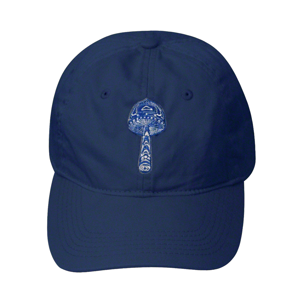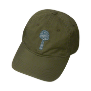 Our 6-panel 100% organic cotton baseball cap features our distinctive mushroom icon logo embroidered on the front. Pigment-dyed cap with fabric strap and antiqued brass glide enclosure.