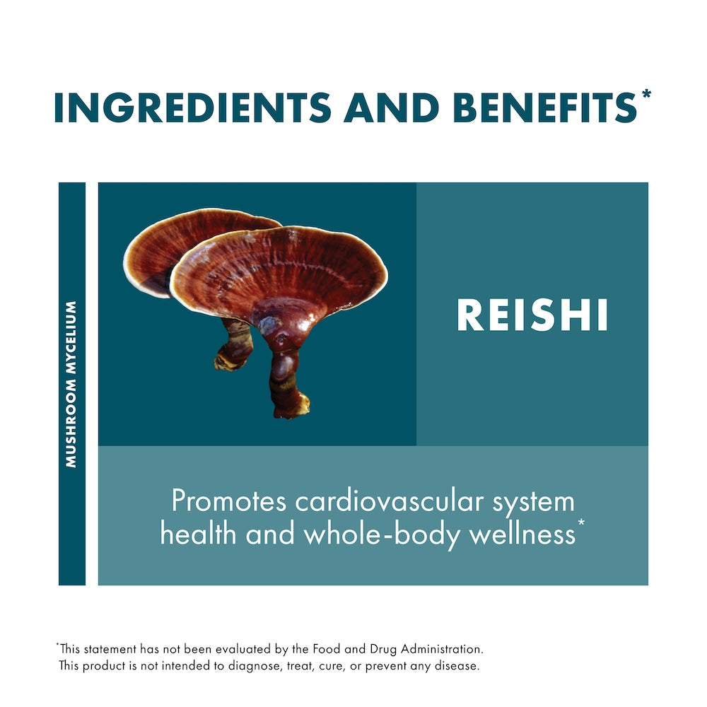 Reishi grows throughout the world, primarily on hardwood trees. Used for more than two millennia in Asia, Reishi has been respectfully called “The Mushroom of Immortality”. It’s well known for supporting overall wellness and vitality.*